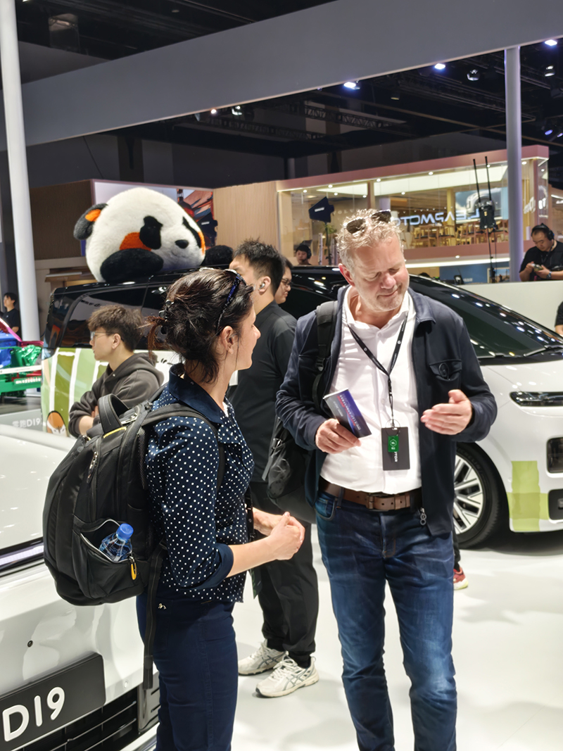 海外面孔明显增多。数据显示,本届车展注册海外媒体记者人数比上届增长了40%。上汽集团等车企展台,均配备了同声传译设备,英语、德语、西班牙语的翻译轮流上场。
